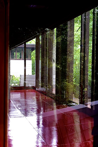 Read moreIt is quite covered by foliage on three sides. If you walk around the perimeter you can get a good idea of what the building looks like through the trees. You can see up the driveway a bit and into the dining room, but don't peer. It is a private residence and their privacy should...