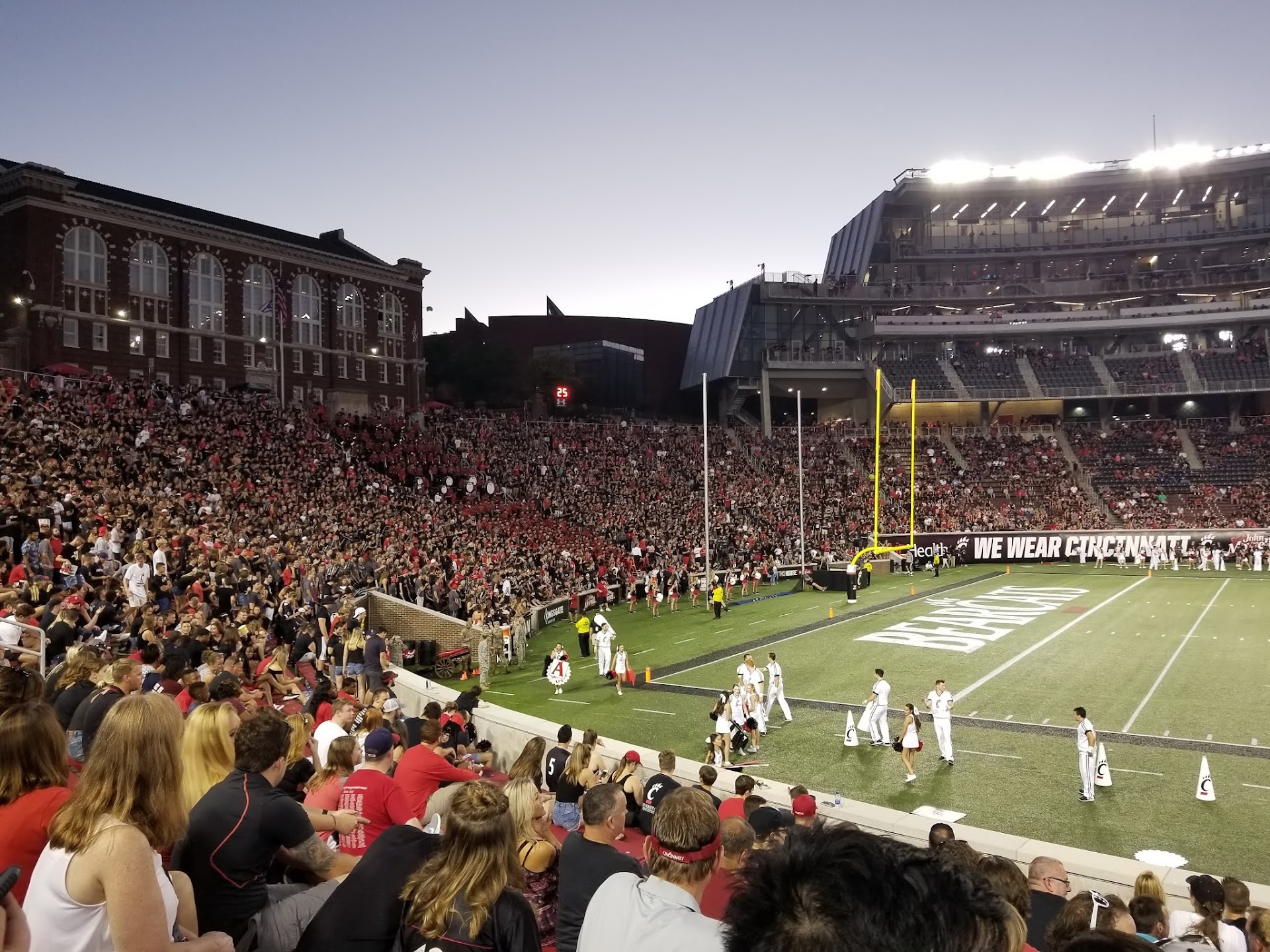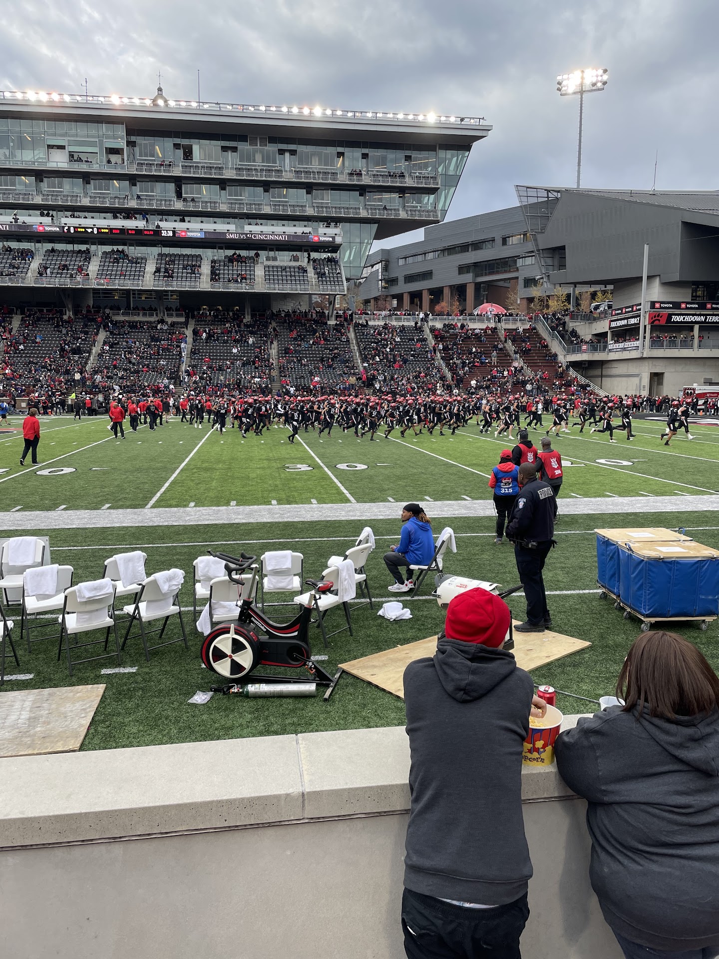 Read moreFirst of all, this stadium is basically a hole in the ground. The city of Cincinnati itself leaves much to be desired. There was a constant smell of marijuana as soon as we got on campus which is UNACCEPTABLE. Some drunk Cincinnati fans tried to steal some of our equipment and hit people with it. Not only were the fans invading our section, but they put us in the corner all the way in the endzone which smelt of sewage the whole game. Also, the abundance of porta pottys was ALARMING. The most disappointing thing was the concession stand selection. They sold cups of cheese by itself, didn’t have hotdogs, and they had PEPSI PRODUCTS. That in...