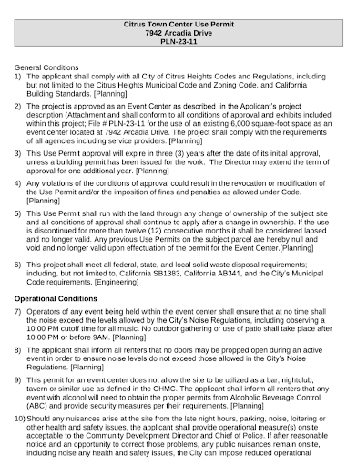 It's totally ridiculous that an event center was even approved to operate in an existing neighborhood. It's one thing if the owners followed the terms of the Use Permit they agreed to, but they...