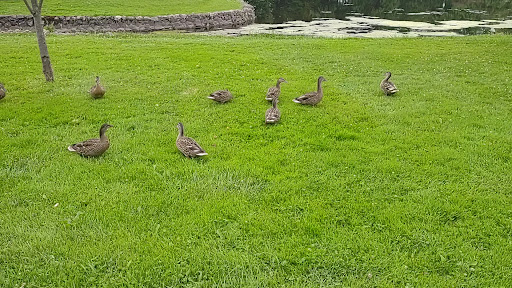 They have ample parking on the side of the park. The park doesn't have a playground. Overall it's ok. It's a good place to walk around and have different flowers to look at. The pond has a huge amount of algae on it. There are ducks and geese you can watch. Plenty of different benches to sit down on and take a rest or watch the pond and relax. I saw a huge snapping turtle by the little bridge. Lots of different blue gill you can see in the pond aswell. They had a children's story you could read as you walked around. The pond has a page of the book set up at different spots all around it. If your just looking for somewhere to walk and stretch your legs then this is a ok spot. If your looking for a place to take your kids for something too do then I would go too a different park. You are allowed to walk your dogs here. We saw several while...