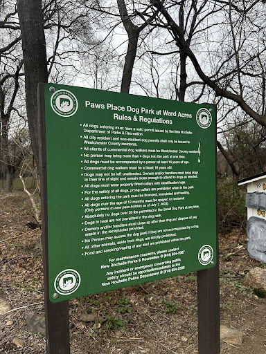 Read moreThis is the biggest dog park Iâve seen. There must bigger ones somewhere, but are they designated as dog parks? A wide variety of people come bringing a wide variety of dogs. For the most part everyone gets along. If your dog is vicious there will be pressure on you. Occasionally New Rochelle attempts to enforce the permit law, but this is not common and it wasnât worked out well for the town politically - this is one of the reasons that the rest of Ward Acres (the surrounding city park) is not in very good shape. Nice benches in the park. The dog park has a big variety of trees crabapple, black cherry, Elm, Bitter-nut Hickory, Ash, and some Kentucky Coffee Trees. The latter grow out almost horizontally due to the invasive vines that previously dominated the field. There is also a functioning faucet to dogs drinking water from mid Spring to mid Fall - and usually there are even spare dog bowls people have left for that purpose. People/city leave bags to pick up poop. Relax, wear your mask, sit on bench, and strike up a conversation while your dog plays. There is usually enough wind on the hill to disseminate breath very quickly so COVID risk...