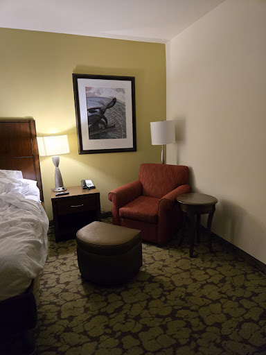 This is the worst Hilton that I’ve ever stayed at. The only thing that salvaged an ounce of quality was the kindness of the front desk staff. They were very helpful. Room 611 (Suite) -Smelled thick of cigarette smoke. -Floors sticky. -No phone in the room at all. -Egressed windows looked into a wall 3 feet away. -Dark with only a few lights. -Bathroom was dirty. We had to change rooms—no suites were clean/better than what we already saw. We downgraded to room 228. Room 228 (King) -Mattress is old, noisy, and uncomfortable. -Only one bedside lamp—no other lights other than the entry—with an interior window. A very dim room. -Couch is broken to sit in-springs tip the seats to the middle. -Shower is grungy. -Sink was slow/nearly clogged Room 322 (2 Queen) -Mattresses are old and uncomfortable. -Mattresses are badly stained. -Floor is stained with a large red stain in the middle of the room. -Shower is grungy. -Shampoo and conditioner bottles are empty. Maid service entered room 228 only 1 time, and they only took out the trash. No towels, no making the bed, no cleaning. No other cleaning service for our entire 4 night stay, despite us being gone all day each day and never posting the do not disturb. We had to call to ask for fresh towels. All rooms look as if they haven’t been updated in decades. Keys for both rooms were reset without notice on two occasions. Requiring us to return to the first floor desk for new keys to get into our rooms. Our parking pass “expired” while we were in the lot on the second day of our 4 night stay. We were stuck in the exit until I went to get a new pass printed out from the front desk. WiFi is shoddy at best, and never allowed us to use Room 228 to authorize access. AVOID THIS HOTEL.