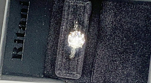 There it was this stunning tiny Platinum ring (my fiancƩe is a small lass) and gripped by the clasps was the Diamond, I'd bought and yes, it is magnificent! I am over the moon and a certain special girl is going literally 1. pass out 2. Start crying 3. tell me where to go!
