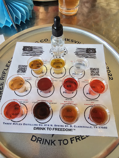 Three Rifles Distilling, the only licensed distillery in Clarksville, TN, had their grand opening today. They had live bands, food trucks, and professional bartenders on site. They are in the basement of the downtown location of Star Spangled Brewing, at 614 N. Spring St, just off Riverside Drive. This also makes the site a "brewstillery."
