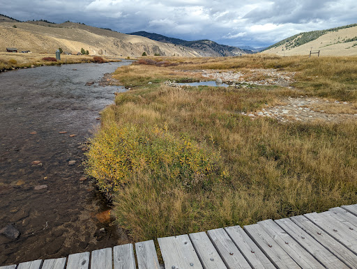 Read moreNice soak right at the edge of Stanley on public land. There are far more scenic hot springs in Idaho, but if you happen to be in Stanley this might be worth a stop. Temp was pleasant, probably around 95°, but there is a nice hot spot where the bubbles come out. Mild sulphur smell. Note that you park in a dirt lot off Valley Creek Road and cross a footbridge to the other side...