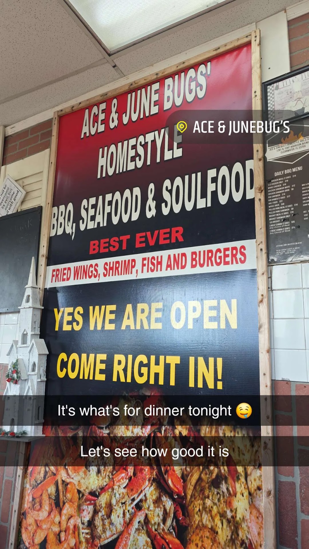 Ace & Junebug's Homestyle BBQ & Seafood in Clearwater is an absolute gem for anyone who loves authentic, down-home cooking. From the moment you drive thru, you're greeted with the mouthwatering aroma of smoked barbecue and the warm smiles of the staff. The place has a cozy, inviting vibe that makes you feel right at home. Whether you're dining in or taking out, the service is always quick and friendly, ensuring you have a fantastic experience every time.