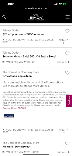 Read moreI've been going to this store for over 10 years. Never had a problem until recently. I had been using Estee Lauder Double wear foundation for a very long time when all of the sudden I began breaking out in my chin. Never, ever had a problem with this before-even in my teens. I used everything over the counter, acne scrubs, Differin, etc.... Nothing helped! Finally I became fed up and tried ulta for some new (and very pricey) Estee Lauder Double wear. The woman there asked me where I had been getting my makeup and I told her. She said she's heard MANY complaints about their products being old and causing skin reactions. Well... I tried my ulta makeup and within weeks my chin completely cleared. I'm not saying the store isn't great, bc trust me it is. But if you notice your skin having a reaction .. Maybe just stick to eyeshadow, perfume,...