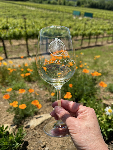 Everything about an experiece at Dutcher Crossing Winery leaves you feeling "On Cloud 9"! Be prepared to be mesmerized by the stunning hillside views and well landscaped property that overlook the vineyard. Staff is friendly and knowledgable and the winery dog shares her affection equally with all of the guests. The charcuterie board they prepared was beautifully presented with a delicious selection of meat, cheese, crackers and fruit. Between the gorgeous views and petting the labrador retriever...I was distracted from the wine. That distraction only lasted a moment until the first sip of their lovely sauvignon blanc that filled my mouth with declicate flavors of tropical fruit. We tasted through 5 of their wines and had to take all of them home with us. The tasting room also offers a shopping boutique where you can treat yourself to some stylish wearables not only for you, but your furry friend at home. I purchased a really neat dog collar created from a recycled bicycle tire, a cute sweatshirt and some stainless steel wine tumblers for the patio. Joining the wine club makes me feel connected to Dutcher Crossing all year long and it's like Christmas each time I receive a shipment. I'm already looking forward to...