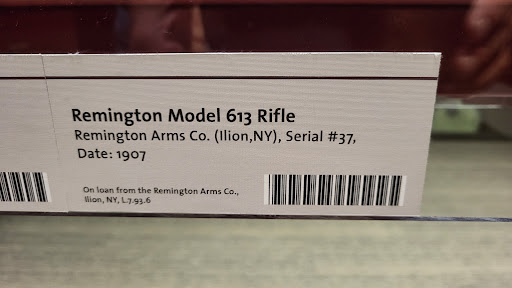 Cons: Lots of wasted space. Most of the items are in drawers (for use of space, but I thought lots of wasted space could have been utilized for a better display.) Randomly organized. Poor lighting downstairs along with items displayed in drawers prevents seeing much detail or color. Many of the information cards are obviously incorrect. Examples: a Remington Model 513S manufactured about 1940 is listed as a model 613 made in 1907; a Winchester Model 94 in .44 Magnum is listed as “.43 caliber.” (.429 bore rounded to .43, but the cartridge designation would be more useful); a Glock 32 is listed as a .357 “magnum.” Many, many examples of such errors exist.