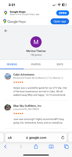 Read moreI have given mostly 5 star reviews and the 1 star reviews were warranted. Please see photo for 5 star reviews given on other adventure type small businesses. Again, as someone in the small business space I understand the importance of reviews and policies but again I will reiterate that there are things that come up that are far out of anyone’s control. We had just gotten word of a situation and were having to make multiple phone calls and cancel our trip everyone else we spoke with has been lovely and kind and understanding. As a matter of fact I will go review all those places as they do deserve lovely reviews. Please do not slander my name when you have beef with another party.