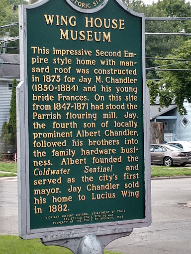 The Wing House is a private house located at 27 South Jefferson Street in Coldwater, Michigan. It was listed on the National Register of Historic Places in 1975. The house is currently operated by the Branch County Historical Society as the Wing House Museum.