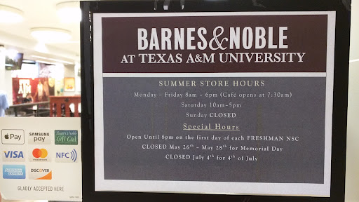 They literally closed doors 15 minutes early (while students were still inside). I was told that I needed to exit the building and go around to the book store, despite perfectly good stairs being about 20 feet away. I To my dismay, the downstairs doors were locked and no one was in sight. The woman who refused to let me take the stairs was the only person visible, and she resolutely refused to look my way, despite the store still being open and other customers still browsing. I am beyond upset that A&M would allow this sort of thing.