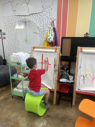 I have both a toddler and an older elementary schooler and our family absolutely loves Color Me! First, this is just a fantastic environment: itâs both creatively and visually stimulating and engaging for my kidsâand yet not at all overwhelming for me as parent which is a huge win! The space is large enough where is no shortage of activities and stations for my kids to engage with, but contained enough where I can comfortable sit back in the lounge space while my kids have fun and never leave my line of site (which I love with a wild and crazy toddler). I also really appreciate that my kids can get their creative wiggles out without the effort and added time on my part to set up or cleanup. There are immersive, messy experiences (with smocks haha) that Iâm so glad that my kids get to experience that would be a huge cleanup commitment at home. There are also both free play stations (including blocks/hands on toys outside of painting or paper activities, story time and whole a marble run wall) and structured/ guided themed activities each week so itâs not up to me to come up with the ideas for âwhat should I paint?!â