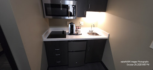 The rooms are nicely appointed, if you like a minimalist, modern kind of thing. Lobby is nice and so is the size of the breakfast room. The bathroom is nicely appointed as well. It is nice to have a walk in shower with a new glass door, however, the shower itself is very narrow, and not super comfortable to take a shower in. Also, while the hot water is plentiful, the water pressure is just so, so. If you are to go to the restroom with the bathroom door opened, it is just too small. Your knee crashes into the door. The bathroom is just too small. The room is large, and they could have easily sacrificed some of that room and given it to the bathroom.
