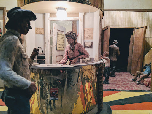 Amazing detail in this one of a kind attraction. Kids of all ages will delight in the enchantment that can be experienced while travelling the streets of "Magic Town," a 1/6 scale model of a cityscape circa 1950's Anytown, USA. Children will delight to see the sculptures come alive through simple stage illusion and lighting techniques, while adults will enjoy the experience and possible nostalgia for the old times. Times when life seemed simpler, but was inexorably complex. The statues Michael has been creating for more than 40 years have made his gallery an icon of the Old Colorado City atmosphere. At times guests can even be delighted by a visit from the master "Magician" himself; Mr. Garman has been known to drop in on occasion to give people personal anecdotes and tours if his masterpiece. Everyone will enjoy what is sure to be a newly created lifetime memory that will bring them back for...