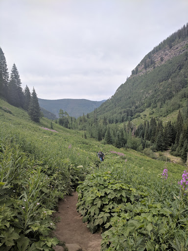 Read moreThis was a nice hike through wildflowers but the parking at the trailhead was woefully small, with no signs as to where you should park when the lot is full. Also, there are signs that say the parking is only for three hours, which, if you do the whole 9 mile hike, is not going to be adequate. We ended up parking at the Vail Mountain School down the street, crossing our fingers that we would t get towed even though no signs indicated that we couldn't park there. In the end, it ended up being fine. The hike itself was pretty, although there were a ton of flies through half of the hike, which wouldn't go away. Lots of people who didn't bring enough water or snacks, too. It's a strenuous uphill hike, so you need to be prepared! We went halfway to the waterfall, which was cool to see. You can climb down close to it. You can continue on to the lake at the top but that's another 2.5 miles up so we just turned around. I would do this hike...