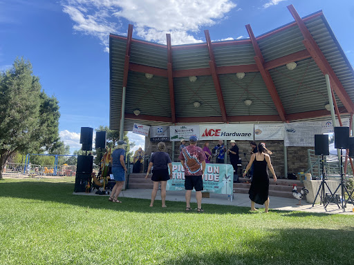 This is a long skinny park right next to the railroad tracks in a nice, quiet neighborhood. I personally love the sound of the big diesel engines & the "song of the railroad" made by steel on steel as the train rolls by. Besides a playground with a Merry Go Round (wow!), it has slides & swings & the usual equipment. The park includes a volleyball court, small covered stage & bathrooms. Monument hosts a few band events here through out the warmer weather months. The stage can also be rented or used for free by school groups (check on this as policies may have changed). Several eating establishments are walking distance...
