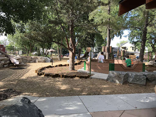 • Great features for climbing, slides, and a zip line, all newer and not breaking down as is with a lot of playgrounds • A lot of shaded area for those hot Summer days • A good amount of parking available • Right next to the train which comes by sometimes and small park with sprinklers sometimes running (you know kids love sprinklers) • A reading area in the park frequented by the people of Wandering Jellyfish (the store is a nice walk from the playground if you haven't been there)