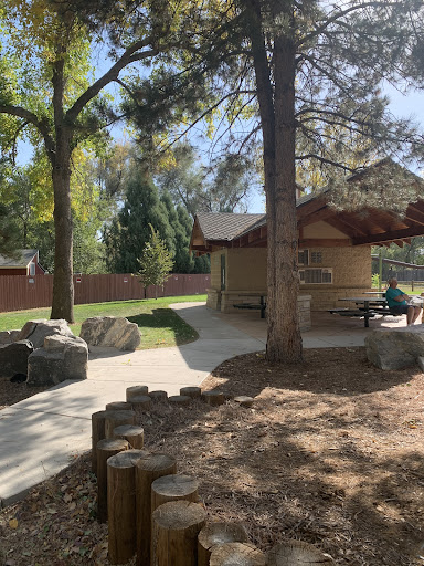 I think this is a great weekday playground. There's a two-story rope gym, two distinct play structures with integrated slides, a couple spinning effects that kids can hang on or hold onto, one regular swing and one handicap swing, a pit for playing ball in, a zipline, a paved trail with a sitting area underneath a pergola, public restrooms, public water fountain, a small dog park adjacent to the playground, very nice landscaping and decent shade mostly throughout. There are also a few picnic benches next to the restrooms and a little free library. The ground underneath the playscapes is wood chips, but there are a lot of stone effects built into the play area. It can get a bit crowded on the weekend, especially if there's a birthday party. There's also not a lot of space for older kids to really run; the whole thing sits on an acre or so. There are no trash cans or recycling bins in or near the park, including in...