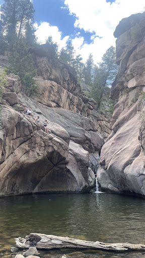 The crowd is mostly young adults or teens, and who could blame them? I saw a few CU Buffalo shirts there. I don't think I would make the trip that far to visit. Did I not mention the place is crowded? There is a line up the cliff to jump off, and the water hole below is not that big. Families bring their small kids to play in the water, but the "safe area" cannot accommodate the amount of people there. Going down river more, the water was not incredibly high (maybe ankle length), so forget swimming there.