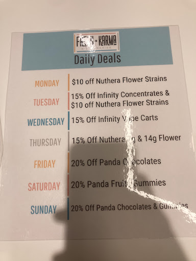 Read morewent to the new dispensary fresh karma! As soon as I walked in you can notice how modern and visually pleasing the whole place looks! I was greeted by the very nice front lady and she was very respectful and kind. And as I walked into the actual dispensary part I was greeted by another person and she was very nice and she got my Order done in like 30 seconds! The prices were pretty good too! I talked to multiple staff members while I was there and they were all so kind and cool! And to the left of inside the store thereâs a table and a kind lady thatâs representing nuthera and she was very kind and explained to me everything their company does and how they support the environment! Everyone was absolutely amazing and I would love to...