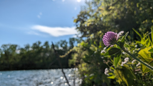 The scenery at this park is beautiful , the walking trail is very nice. Some people fish here. There are benches to sit no picnic tables. But there are possible places to lay your blanket and enjoy. One concern is there is only portable restrooms which are gross and the underway you have to pass to get to the park stinks. So for 30 seconds you might want to hold your breath. There are berry trees...