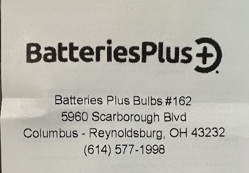 Read moreFive stars aren’t enough for this store! I recently purchased a vehicle from a dealership close to the store, and after a very frustrating experience, I left with a key fob that didn’t work. Unfortunately, the dealership told me to get the battery myself, which was why I contacted batteries plus via phone. I explained my situation, and Danny, (at store162), told me to go to his store and that he would help me out. I was very frustrated and felt defeated when I walked into the store, but I was quickly greeted by Danny, and that all changed. Danny went out of his way for me, and quickly replace the battery in my key fob and made sure that it worked properly.I cannot recommend batteries plus highly enough, and I will definitely be going back there with all of my future battery needs. Thank you batteries plus, and Danny for helping me and turning my very upsetting day into a great afternoon. Steer clear of the dealership, and take all of your business to...