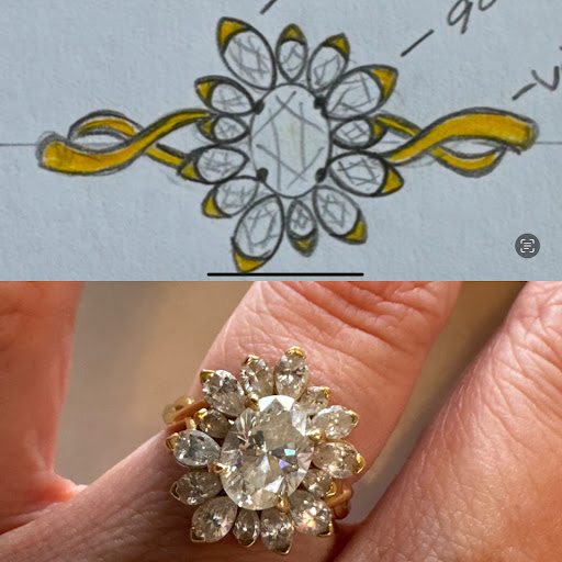 I am excited to see my redesigned ring! They worked with me to help me maintain my wedding ring and the original diamond that my husband picked out, but add to it to make it something that I know I will love.