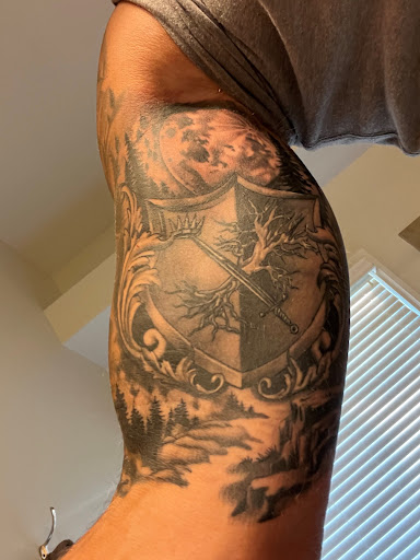 Read moreI came to Mark about a year and a half ago with 6"x4" cross on my right arm that was about 25 years old. I never really loved it - artist put it a little to low. I had heard how talented Mark was so I just asked him to create over top of what I already had - eventually I wanted a wrap around half sleeve on my upper arm. Just recently finished the last part, and I'm thrilled with it. People stop me ALL the time to comment on how great the creativity and especially the shading. Would recommend him to anyone! Took 6 sessions (2 for front, 1 for top shoulder, three for inside of the arm (b/c I could only sit for about 2 hours at a time - which Mark was totally cool with and left me looking complete after...