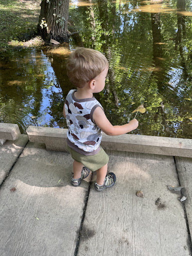 My husband and son were skipping rocks towards the end of our time down there. As we were coming out of the woods from the trail some old woman comes outta nowhere at us saying " don't let him throw my bricks in the water again."