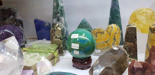The vibe is "secrets of life"! As you open the door of an establishment, you realise you have inadvertently stepped through a portal into a secret grotto somewhere!!! A mystical cave, ready to share its wealth of knowledge and energy with you, traveller! You are instantly engulfed in, and hugged-very gently-by the aroma of "a house blend" [of] incense, as your eyes try to decide just WHERE to focus in this magical cave you have stumbled upon! Perhaps on the meticulously cataloged and displayed crystals, gems, minerals and other gifts from earth...some raw, some tumbled...some common (abalone), some rare (natural ruby and sapphire!)...baskets askew, waiting to be filled with your selections (be sure to grab the free identification cards, otherwise you'll never remember if that is obsidian or onyx?)...ask nicely and the amazingly humble and insanely intelligent humans working there will bag your finds individually! Also check out the shelves of Tarot...they are always getting new stock! So amazing. The bookshelves are drool worthy...but mind your drool! These are rare and precious books my friend. Well, some, like Crystal's for Dummies...not so much! Lol. But still a VITAL addition to your collection.The stock is constantly rotating so grab it if it resonates, honey! I do, and I'm NEVER let down! The entire place is a kaleidoscopic wet dream for anyone of a Spiritual Nature. There are incense, cone and stick. Aromatherapy. Leather-bound journals. Floral Essences (the kind you ingest!)...get hip, these life changing! Of course there are encouraging and inspiring and life affirming trinkets and hangings and decor in every available space! The wall, the floor, the tops of shelves, on top of other items?! You might turn and walk right into a dream catcher! Be aware. For many many reasons. While checking out, you will see the JEWELRY case...my 2nd fave. Aside from the orb cages meant to hold your gems and crystal so you can wear them....they have a jewelry collection so extensive it wraps all three sides around their check out area! Found items, antique, vintage, repurposed, the more EXPENSIVE and The CRYSTALS WITH THE MOST POWER are back there...like the Sterling Silver and MOLDAVITE Moon Goddess pendant I purchased there. Intense piece man. I must be cautious when I wear it. Finally, my FAVORITE part of this store? The little room off to the side by itself? It's a MUSEUM! YEAH! I mean, sure, the pieces are for sale..but they don't expect people to rush in to pay 300 for a giant stalagmite...soooo....yeah. For now, and for a long time it has been, a display of epic proportions! A salute to the fantastical world of gems, crystals, and minerals....the Large, the crazy, the stupendous, the abnormal, the clever, the historic, the intriguing...they have it all! And like everything else in this land of magical fancy...the ebb and flow is as organic as their products!!! Meaning? It's always changing, my friend! Why not come travel to this little slice of mystical happiness sometime soon, and add YOURSELF to the list of organic treasures that blessed their space, huh friend? If nothing else, come clear your mind, senses, and chakras with the sage bath they regularly perform in the space (with so many bodies coming and going...its simply their due diligence. After all, they are purveyors of items that catch and retain energy. )I promise you will leave with a sense of peace and wonder, if not bags full of trinkets and...