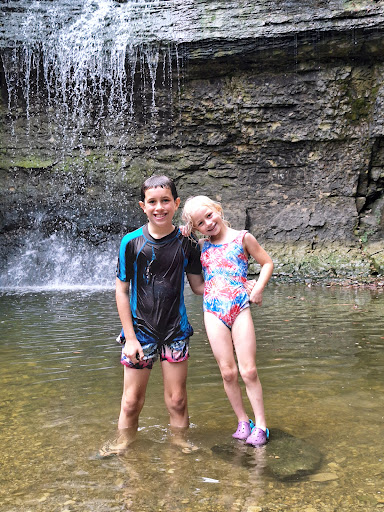 This is a really cool park right in the city. There is a bike route that has a cool obstacle course. There is a really big hill that we got to walk up and down. There's a nice view of the rocks and water. The kids enjoying throwing rocks in. There are lots of trails to walk along. We were confused about where to find the waterfall that is advertised in the pictures. It turns out that there are multiple entrances to the park and there is a specific entrance to get you directly next to that waterfall. It is easy to see. The upper view would be accommodating towards any person, including people who can't walk very well. Then you can go down lower to where the river is and see it there as well (not for those with difficulty walking). You are allowed to wade and step in the water knee deep, but they say no swimming. The kids really had fun with their swimsuits and wading. They would have played...