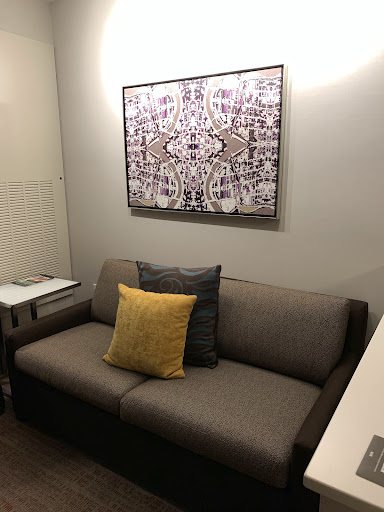 My room was a very pleasant surprise as it looked great in the pictures that I reviewed but the room was much larger than I thought it would. Everything in the room screamed elegance, as the room had very good lighting, modern and new looking furniture and fixtures. My only regret is that I was only here one night. They really created a great space when they designed this hotel. For the business traveller, you will have enough plugins and USB outlets for your phones, Tablets, computers, and anything else. The room had a very large TV with lots of channels, the couch was so comfortable that I took a little nap on it by accident. The bathroom was big, bright and clean. Plenty of towels were at my disposal and the bed, was very very comfortable, and I had a very deep sound sleep. This is a Marriot Residence, so it is made for a longer stay, it had a kitchen, a great space for working, enough room on the floor for yoga, or ROMWOD, or just for walking around like I do when I'm on the phone.
