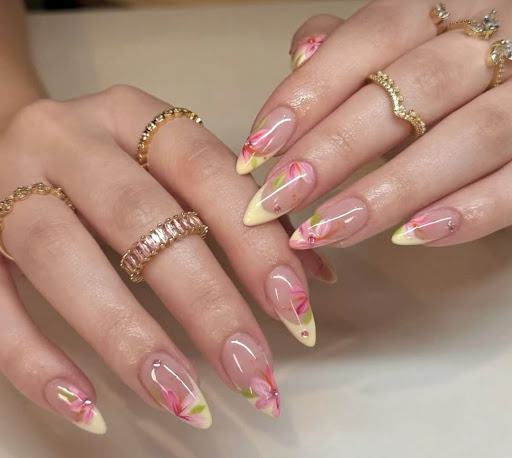At the very end of the appointment, she said she had enough time to add art to two fingers and quickly did a version of the flower design. Unfortunately, the quality of the work was very disappointing—my nails looked rushed, uneven, and nothing like what I had asked for. I left the salon around 6:00 PM feeling extremely let down and had to quickly find another nail salon to fix them, since I was leaving for vacation the next day.