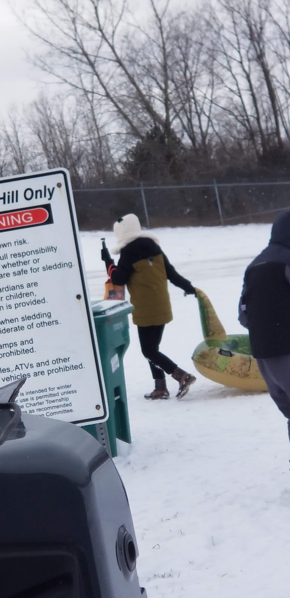 What is super fun hill to go and enjoy on a snowy day! There is a convenient handrail to help you up the hill to make sure that you and your littles don't fall, and the people there tend to be very polite and allowing you to clear the area before going down themselves. We come here every year when there's a good snow, and will continue to come for a good hour to 2 hours worth of energy release for my little guy. There are no restrooms so make sure that your kids have used the facilities before they come, but there's a trash can for broken sleds as is common on these...