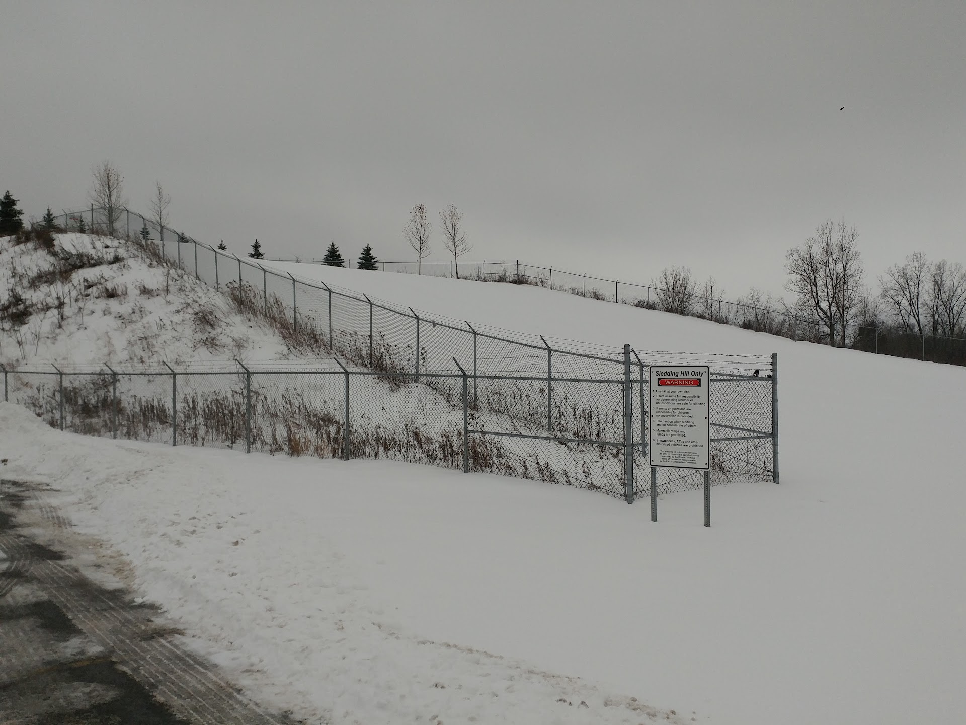 Read moreThis is a hill made specifically for snow sledding so the ground is smooth. There is no fee, nobody monitoring anything and the paved parking lot is always plowed. The hill's decline is about 75 yards long. The sleds go slower with fresh unpacked snow or it can get quite fast if the snow's packed down or icy! It's the perfect hill for parents to take the kids to if the parents don't want to be involved in the action. They can stay in the warm vehicle and see everything going on right in front of them. If a child were to get hurt, the parent could see that and get to...