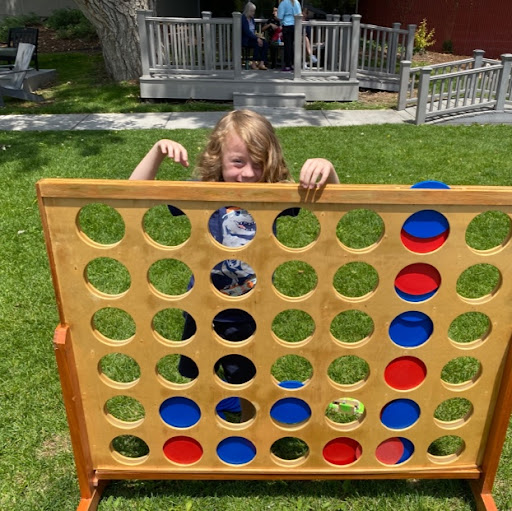 Library was very quiet on a weekday afternoon. Lot is a bit small but we had no troubles parking with a smaller hatchback SUV. Staff is friendly and was welcoming in spite of having their quiet interrupted by two toddlers! I came to take my son to the children’s area. There were a variety of toys including a table and stools, blocks, large colored scarves, a small play kitchen, and baskets of board books. The real draw is their outdoor play yard, with a gorgeous old-growth tree, flat grassy area, benches, kid-height garden beds, and musical chime installations. It’s all fenced in, so no worries about the little ones running off into the street. There isn’t a play structure or toys out there, but the toddler didn’t need them. Would be a lovely place for storytime. They host events out there in the summer. I saw a bubble...
