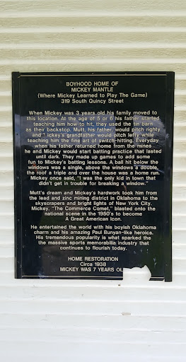 My husband is the baseball fanatic and historian but I do enjoy the history. In this instance, I could have cried! What a shame! Mickey Mantle is the only reason I ever heard of Commerce, OK. You would think the town would honor and embrace the town hero in every way possible but No, they don't! RESTORE AND CARE FOR HIS BOYHOOD HOME! Mark it in a way that makes it easy to find and please, hurry and do what is necessary to prevent it from falling into total disrepair. It...