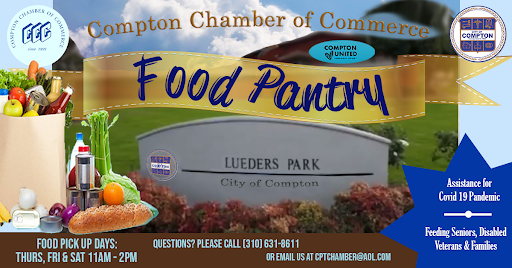 The new permanent location for the Compton Chamber Pantry is the Lueders Park Community Center located at 1500 East Rosecrans Ave. in Compton. The "Compton Chamber Pantry" will resume its operations at the new site on Monday, March 1st, 2021. The first food pick-up date open to public will be Wednesday, March 4th, 2021. The curb-side food distribution hours at the new site will be from 11:00 am to 2:00 pm on following days of the week: Thursday, Friday, and Saturday. Participating churches and other partner food distribution operations throughout the City of Compton will pick up their supplies on Wednesdays from 11:00...