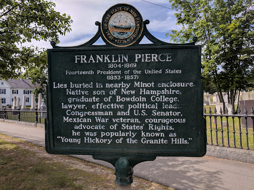 Truly historic in nature, the burial place of 14th President of the United States, Franklin Pierce. The Pierce plot is located in the Minot enclosure, a small fenced in area off the main area of the cemetery. Pierce's strict interpretation of the Constitution and his firmly held beliefs in States Rights during his presidency began the inexorable march of the nation toward...