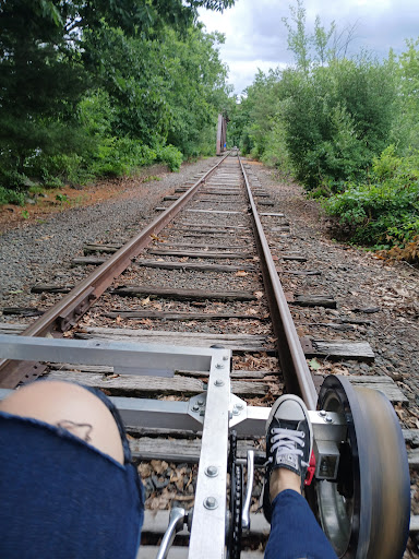 Now you ride back to where you started. You hop off while they push your cart across the road and get back on (this is quick). Then you ride to the opposite end which takes about 20 minutes. The first half is wooded and the second half is fields and a trestle over the river. Then you get off while they turn you around. Again, about 10 minutes and then ride 20 minutes back.