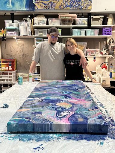 Ā Ā Ā Read moreIāve had the pleasure of multiple puddle painting sessions with TuxedoKat over the years, but this one was extra special. We measured out our space and had a custom canvas built by Allegro, another local Concord business, and brought it to TuxedoKat for a couples painting experience. Her and David were fantastic hosts. We did a collection of practice pours before hitting our main canvas, and she guided us through a variety of different techniques that we could use. Her professionalism is top notch, and they were so much fun to spend time with during our session. She then provided the space for the paint to cure and she finished the piece with a gloss coating, ensuring it will have a long life hanging in our home. The experience and art piece are one of a kind. Next time youāre looking for a unique date night, to celebrate a special event, or a fun activity with the kids check out...