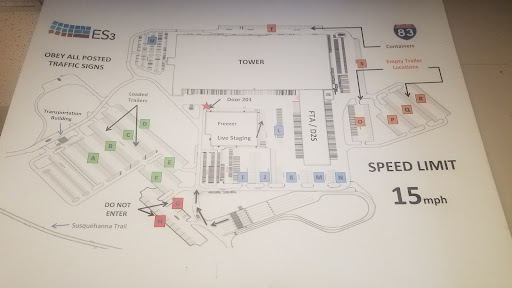 Update Picked up a load yesterday at this location. Pulled up to one of 3 green lighted lanes a little over an hour from my appointment, checked in, got the roof tracker, parked in live staging, yard man came and told me dock 31, backed in, disconnected, loaded, yard dog returned, connected, pulled out, got seal from back, closed doors, pulled up and parked in circular lot just past right turn to exit loop, walked to transportation WITH MY PICKUP NUMBER, waited my turn, entered the number, signed electronically, received bols, walked to truck, back to truck exit road, handed bols and seal to guard, tracker removed, received bols, pulled forward, he sealed it, and I left. Back to exit 28 on i83 and on to...