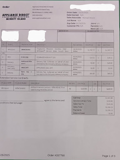 Read moreI have a mixed review. My initial experience was quite good on price though lacking in customer service and professionalism. I purchased a Dishwasher from them and the salesperson, though not the most polished and professional, was adequate. He didn't know as much about the appliances as we did since we did research and had it with us. At least once he said something inaccurate and we showed him the consumer reports we had with us, he didn't argue as my later experience. In fact, he thanked us and asked if he could make a copy. We got a good price and the unit has worked well for several years. We brought it home ourselves and did the installation. I recommended them for price in a review at the time but not for knowledge and adequate for customer service. I said, "buyer beware and trust what they say only after you verify" as a responsible consumer. I still gave them 4 stars with that caveat.