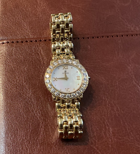 I have owned this Cyma watch for 30 or so years, but the bracelet had become too tight and I hadn’t worn it for over 10. Extensive searching for extra links was unsuccessful. Kinnard suggested I bring it in. He and Chloe looked at it and recommended adding a bar to the back and inlaying a few diamonds to match the face. The result was stunning! I was so nervous when Alan Becker retired and sold his store, but I didn’t need to be. The store is better than ever!