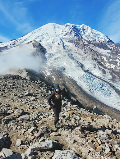 Hands down this hike is in my top five favorites at Mt. Rainier. I believe this day I clocked around 13ish miles. Started by heading up Sourdough Ridge to Frozen Lake to First Burroughs. Hike up to First Burroughs is the first really decent incline. Once at the top it gets flat for a little bit. Second Burroughs again... you go up and flat for a bit. After Second, which would be a fantastic turn around spot as the view is amazing. You go down and into a small valley before the last incline. Which was the hardest. Its a bit long and steep especially towards the end. But the result is so worth it. The unobstructed views are amazing. The Winthrop Glacier was amazing. The crevasses and vastness of your surroundings was unbelievable. Had lunch here, making new friends with other hikers. After lunch we decided to take the Sunrise Rim back rather than the way we came. Allowed for views of the Emmons Glacier and Emmons Moraine Lake. If you go when snow is still on the mountain, late spring/early summer be prepared with poles and spikes. Some of the decent gets steep, its narrow and a lip on a very high ledge. Snow melt makes for slippery conditions. Once you make it to the Sunrise campground there is a variety of ways to go back. I suggest straight, passing the vault toilets on your left headed towards the lake. Its the most scenic out of the options. Going to the left, passing the toilets on the right leads you to a service road. Its an easier hike. Overall beautiful whichever...