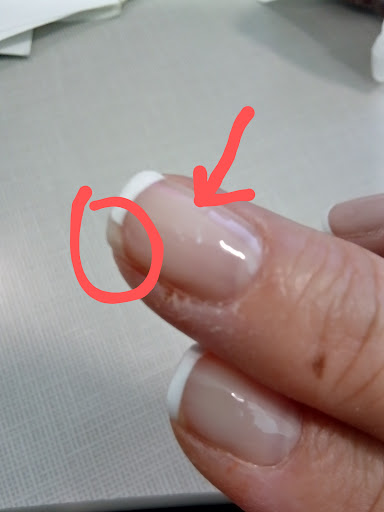 -Update #8 (White French w/ white straight line accents)- don’t laugh, but I forgot to take actual pics, therefore you get to see when they were grown out and on top of a burger and still looking cute. 9th visit- I wanted to get something simple just to have cute nails. I also got a French tip pedicure. I booked everything with Ms. Mandee of course and once again- she proves why I will wait for slots for her, and why I will walk through...