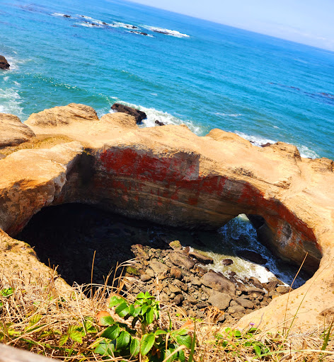 A natural "bowl" at the end of the cliff that fills up with the tide. We just looked from the railing but others took the long walk to access from the beach. A place to picnic is near by with lots of tables. There is parking near by and Mo's if you would like lunch. Also a a coffee shop. If you are near here you really need to stop by and see this spot as it is...