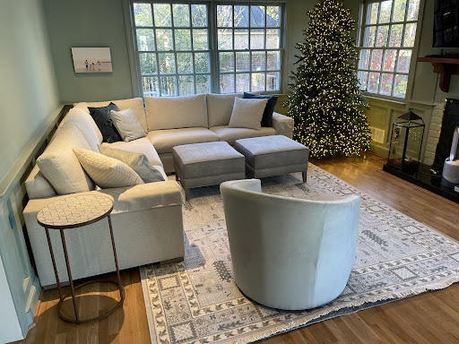 There were numerous visits over many months. Each time we visited the store, she would have the choices we already made displayed at a design table, in addition to those we were contemplating. Seeing it all together that way was extremely helpful! She came to our home to make sure everything fit and the colors worked. She was extremely helpful and patient in the decision-making process.