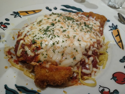 Our meals arrived in a timely manner. I had the chicken parmesan which is a ton of food! You could definitely share it. The chicken was perfectly cooked, juicy and flavorful. The marinara sauce on top had a good flavor and there was cheese everywhere! My husband had the rib eye and it was delicious, cooked perfectly and it had great flavor.